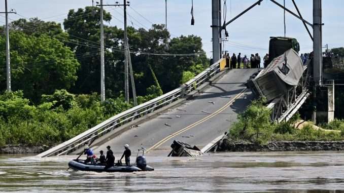 According to the risk management ministry, the bridge’s collapse comes in the middle of the rainy season in the Andean nation, where at least 20 people have been killed in flooding and landslides that have damaged 45 bridges.