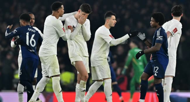 Defeated 2-0 by Arsenal in the Premier League in December, FA Cup holders United exacted revenge on their return to the Emirates Stadium to extend their revival after last weekend’s impressive draw at Liverpool. Ruben Amorim’s troubled side took the lead through Bruno Fernandes, who smashed a superb strike into the far corner from the edge of the area in the 52nd minute. United defender Diogo Dalot was sent off for a second booking after fouling Mikel Merino nine minutes later.