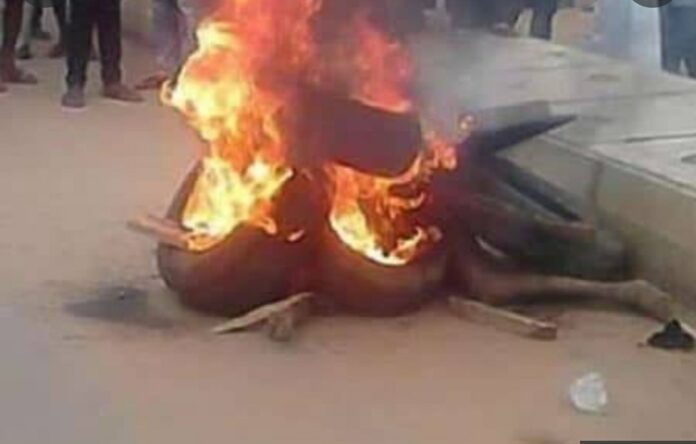 Residents told newsmen that the duo were pursued in the early hours of Monday and caught opposite Divine Mercy Minor Seminary School at Kanshio where they were eventually set ablaze.