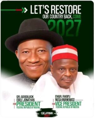 A group called Team New Nigeria (TNN) has placed campaign posters for former President Goodluck Jonathan at key locations in Kano State, fueling speculation about his possible return to politics in the 2027 election.