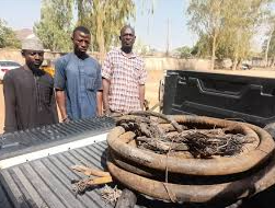 According to the command’s spokesperson, SP Suleiman Nguroje, the arrests were made following credible information from a reliable source. The suspects—Rabiu Ali (28), Muhammad Musa (42), and Abubakar Usman (18)—are accused of stealing cables that supply power to parts of Girei. They are believed to have conspired with three accomplices who are still at large.