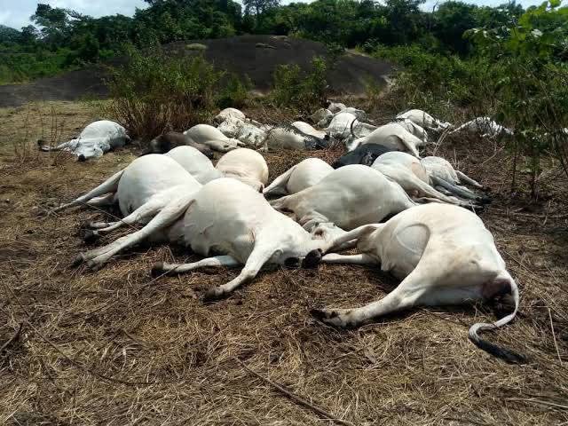 Thirty-two cows belonging to a local herder were reportedly killed under mysterious circumstances.