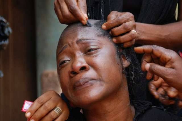 This is common amongst the Igbos. A widow is subjected to humiliation to prove she has no hand in her husband’s death. All kinds of punishments are inflicted on her such as making her drink the water used in washing her husband’s corpse, shaving off her hair and the likes.