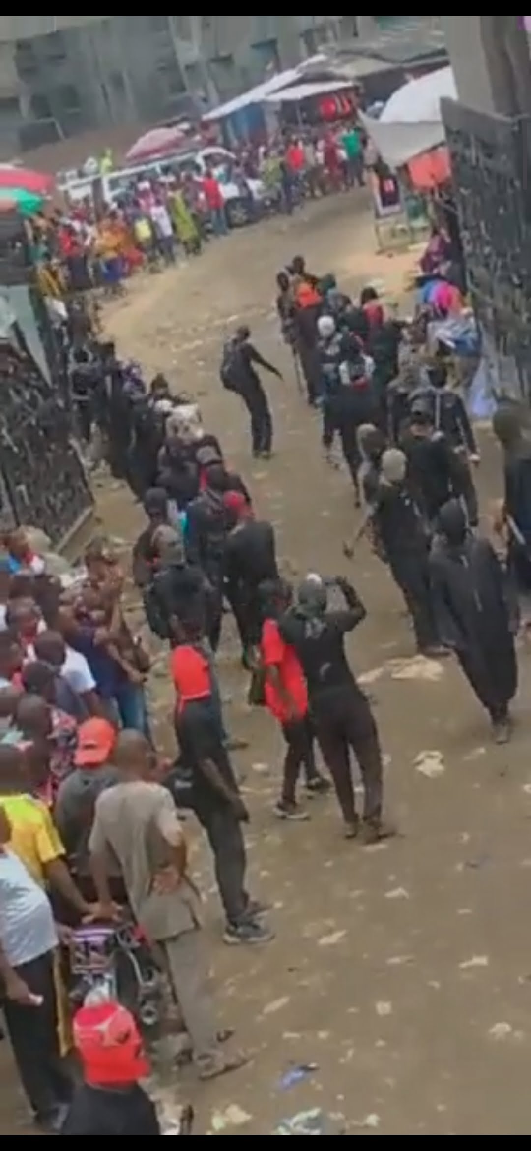 Eyewitness reports and footage from the scene reveal that the gunmen all clad in black attires brandished different weapons and marched amidst cheers from traders in market.