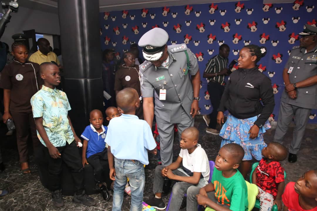 The Ag. CG Bashir Adewale Adeniyi, other officers and some children at the orphanage.