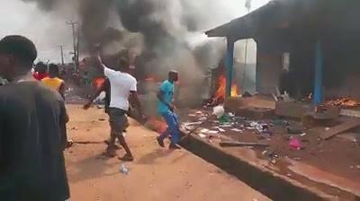 The protest, which erupted in Naka community, turned violent after the bodies of three victims, killed by suspected armed herders, were brought to the area Tuesday morning.