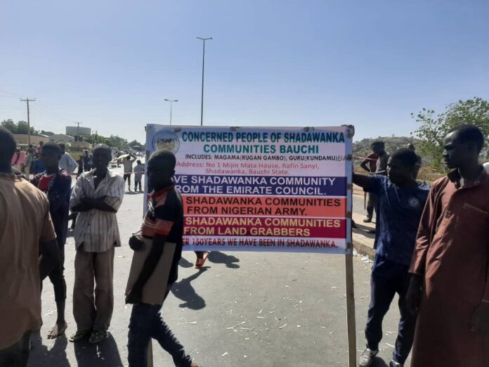 Residents of Shadawanka community surrounding Army Barracks in Bauchi Local Government Area of Bauchi State have protested the forceful ejection from their houses and farmlands by the Bauchi Emirate council and officials of the Nigerian Army.