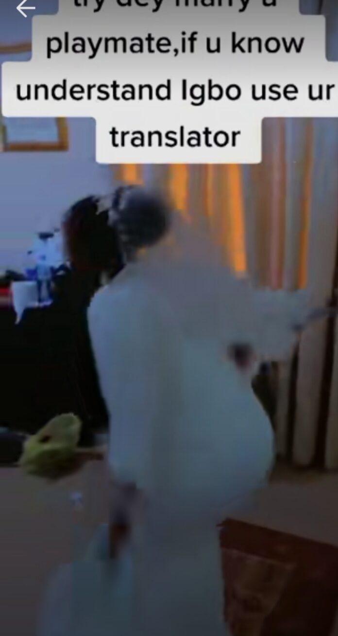 Speaking in the Igbo language, the lady said, while pointing at him, that she was going to deal with him with no mercy.