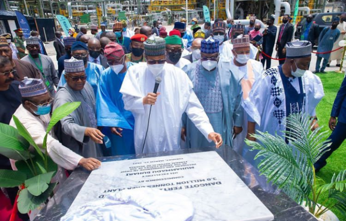 Nigeria’s President, Muhammadu Buhari on Tuesday commissioned the three million metric tons Dangote Fertiliser Plant located at the Dangote Free Trade Complex – Lekki Free Trade Zone in Lagos.