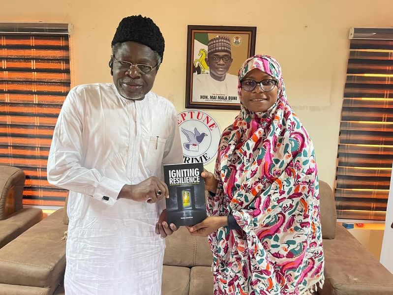 In a pleasant encounter today, acclaimed author, Halima Abdulrauf, paid a visit to the office of Neptune Prime, presenting the publisher and founder, Dr. Hassan Gimba, with a copy of her latest book, “Igniting Resilience: An Ultimate Guide to Getting Out of Your Comfort Zone.”