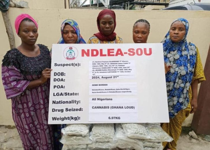 The women, identified as Basirat Olarigbibe (also known as Basirat Feyisara Olaribigbe), Fatima Garuba (aka Fatima Ladidi Abogun), Amudalat Adekunle (aka Amudalat Ajetunmobi), Oloye Arafat Awele (aka Akanni Balikis Oluwatoyin), and Ademola Bola (also known as Tolulope Oluwaseun Osibeluwo or Tolulope Ademola), were convicted for bringing 6.96 kilograms of “Ghana loud,” a potent strain of cannabis sativa.
