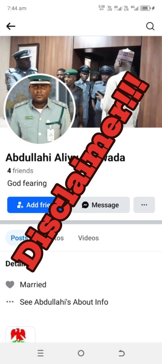 The Nigeria Customs Service has issued a public warning about scammers creating fake Facebook accounts impersonating Assistant Comptroller of Customs Abdullahi Aliyu Maiwada, the National Public Relations Officer.