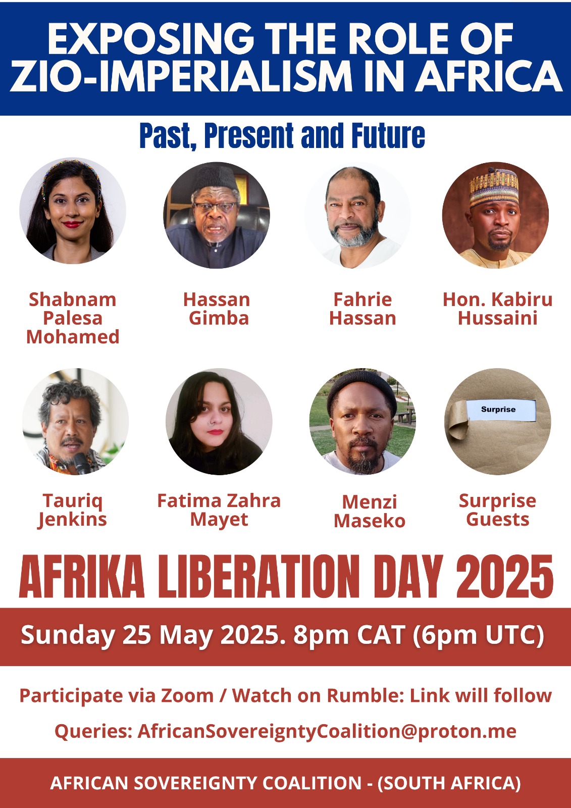 From military bases and surveillance networks to political alliances and corporate interests, this event will explore how Zio-imperialist agendas fuel conflicts, undermine sovereignty, and distort liberation movements across the continent.