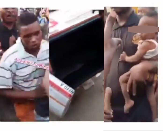 Residents in the Sangotedo area, Lekki Lagos State have apprehended a dispatch rider after a baby was allegedly found inside his courier box.