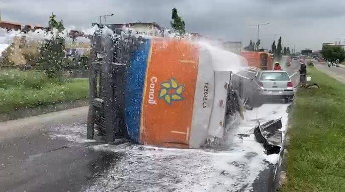 Driver arrested in Lagos as emergency responders rapidly contain fuel tanker spill