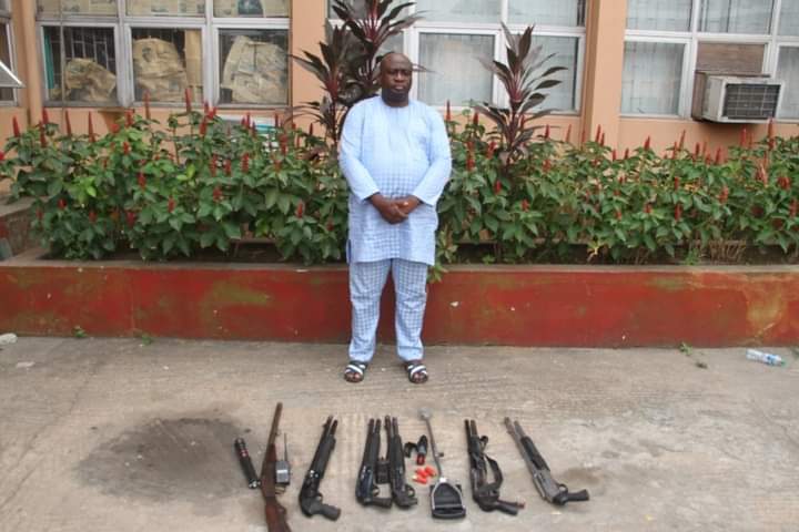 “Upon his arrest, six pump action guns, three cartridge bullets, a swagger stick and several forged documents were recovered from him.”