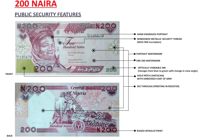 The details and position of the security features are highlighted in official documents released by the CBN.