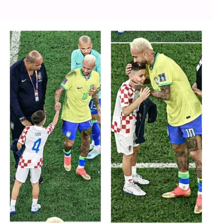 Leo, son of Croatian forward, Ivan Perisić was pictured consoling Neymar Jr after Brazil was kicked out of the ongoing FIFA World Cup in Qatar losing 4-2 on penalties to Croatia on Friday evening.