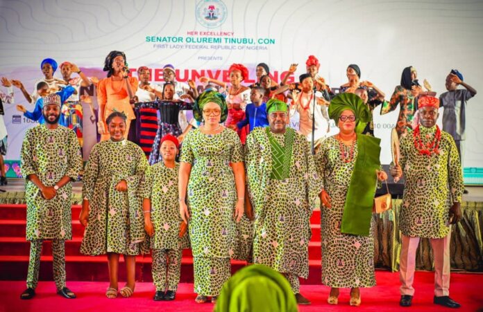 Senator Oluremi Tinubu, First Lady of Nigeria, has unveiled the one Nigeria unity fabric at the state house conference centre, Abuja.