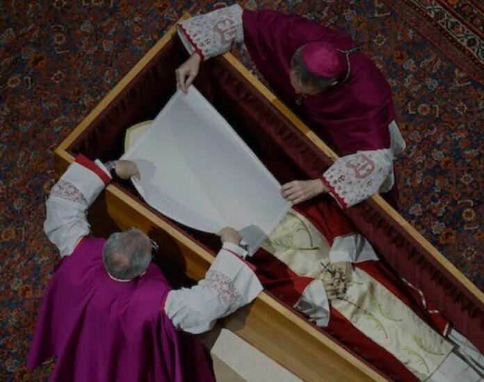 But in line with tradition, a lead tube containing an account of Benedict’s papacy, as well as other items, including Vatican coins minted during his reign, were placed in the coffin.