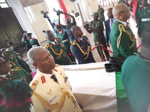 The Chief of Defence Staff (CDS), Gen. Christopher Musa, along with service chiefs, officers, and members of the Armed Forces, attended to pay their last respects.