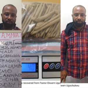 Neptune Prime reports that Rev. Ugochukwu was intercepted by operatives of the National Drug Law Enforcement Agency (NDLEA) at the Murtala Muhammed International Airport (MMIA), Lagos with 54 sticks of drugs wrapped around his body.