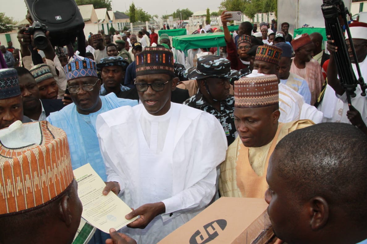 Yobe State Governor, Mai Mala Buni, has on Tuesday flagged off the distribution of complete GSM handset repair sets, laptops, fish production, poultry production, small-scale rice milling, personal beauty and hygiene materials to empower youths in the state.