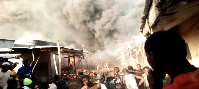 As at the time of this report, the fire is still raging while emergency operators including firefighters battle the fire.