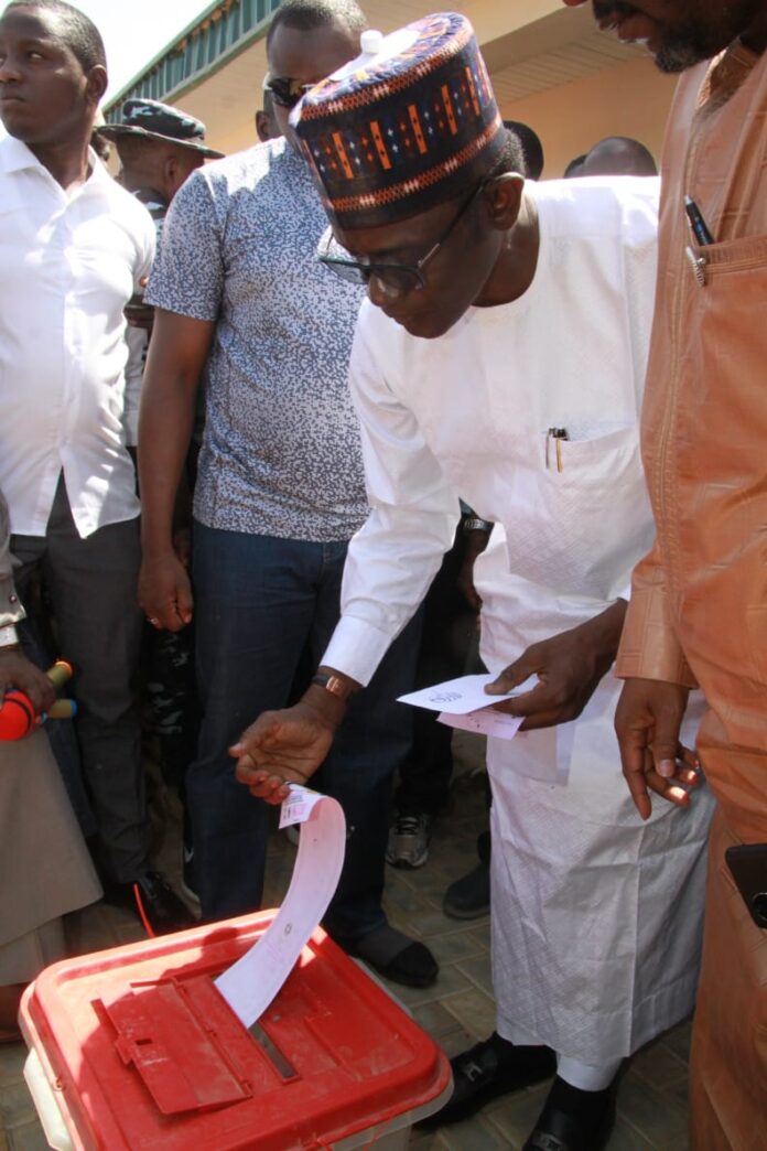 Governor Mai Mala Buni of Yobe State on Saturday cast his vote at Balturam- Yerimaram Polling Unit 004 in Buni Gari ward of Gujba Local Government Area of the state.