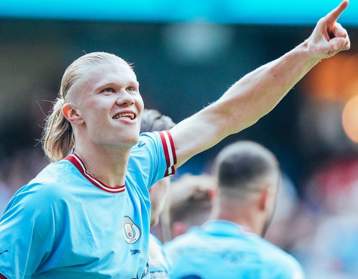 The thirty-two (32) goals scored by Mohammed Salah in the 2017/18 season in the English Premier League (EPL) has been equalled after Manchester City’s striker, Erling Haaland scored a brace in Saturday’s EPL fixture between City and Leicester which ended 3-1 in City’s favour.