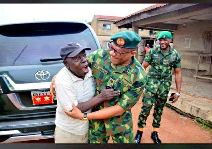 In a heartwarming reunion, Major General V.T. Okoro, the General Officer Commanding (GOC) of the 2 Division in Ibadan, visited his former Chief Sergeant Major, Warrant Officer (WO) Adegoke, who is now retired.