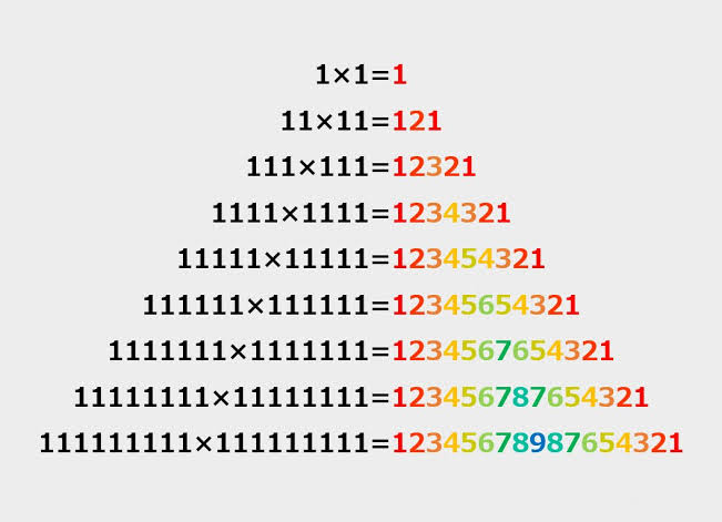 This mesmerizing result is what mathematicians call a palindrome, a number that reads the same forward and backward. It doesn’t stop there; each digit follows a sequence that rises and falls, giving us an eye-catching blend of order and balance. The way these numbers climb, peak, and mirror themselves showcases just how stunning and poetic math can be.