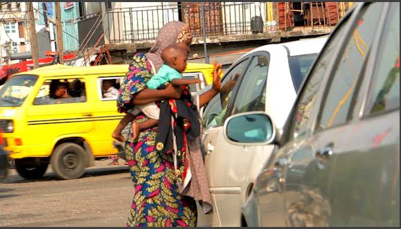 “Oga helps me, my pikin no well, we never Chop since morning.”