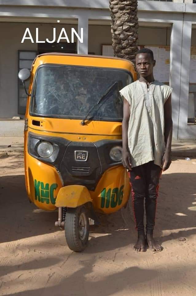 Aljan who is from Kaburma, Yan Daddawa, Dawakin Tofa Local Government Area, Kano State was in possession of a Tricycle with Reg. No. GRR77QA and KAROTA No. KMC 1106 at the time of his arrest.