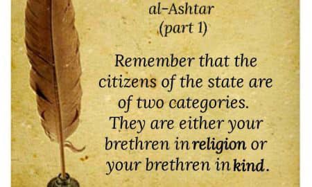 Remember that the citizens of the state are of two categories. They are either your brethren in religion or your brethren in kind. They are subject to infirmities and liable to commit mistakes.