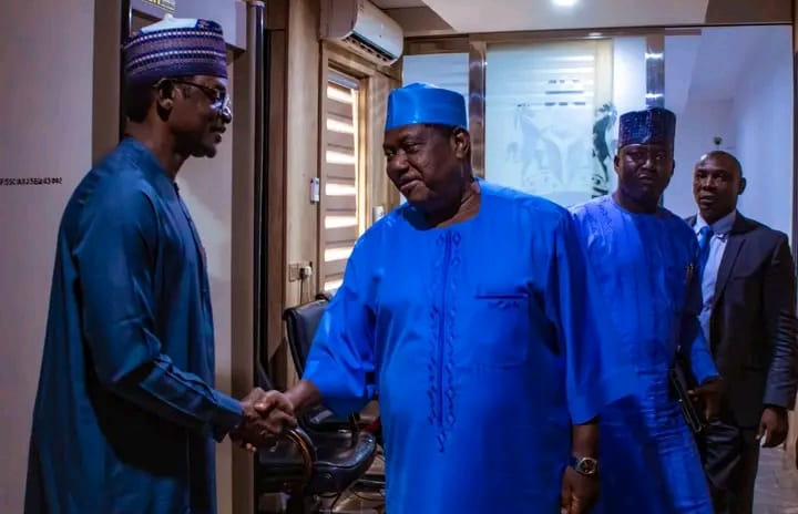 Yobe State Governor, Mai Mala Buni, on Tuesday, July 11, 2023 paid a visit to the Secretary to the Federal Government (SGF), Senator George Akume to discuss areas of cooperation and intervention for the state by the Federal Government.