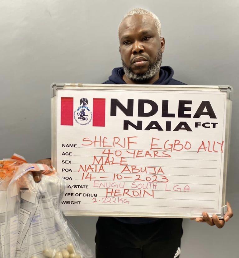 Operatives of the National Drug Law Enforcement Agency (NDLEA) apprehended a 40-year-old ‘businessman,’ Sherif Egbo, at Nnamdi Azikiwe International Airport in Abuja.