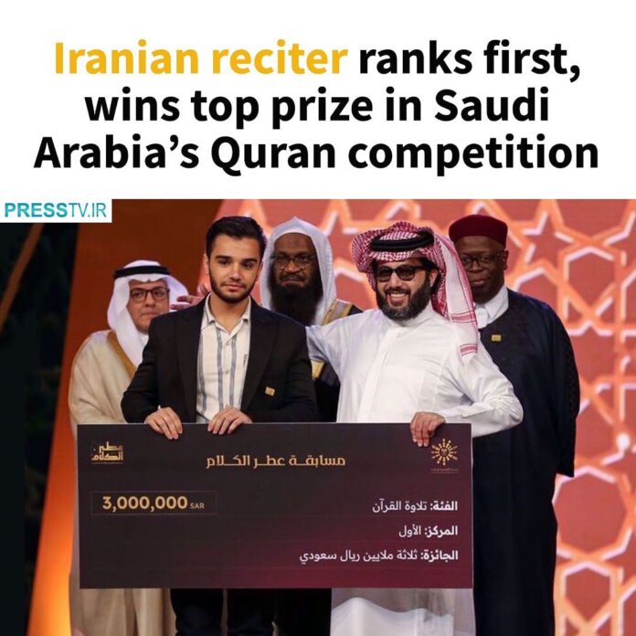 A distinguished Iranian reciter of the Holy Quran has finished in first place and won the top prize in an international Quranic competition in Saudi Arabia.