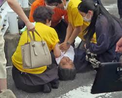 Abe was bleeding from the neck, witnesses said and photographs showed. He was reportedly initially responsive but subsequently lost consciousness.