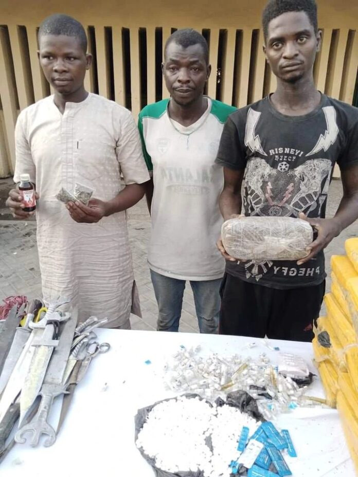 He further disclosed that all the suspects from various addresses within Kano Metropolitan were arrested with dangerous weapons, illicit drugs, robbed, and stolen properties.