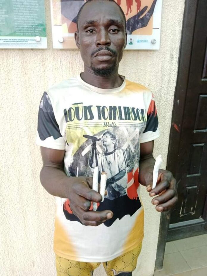 Upon search by NDLEA operatives, he was caught with wraps of cannabis sativa.