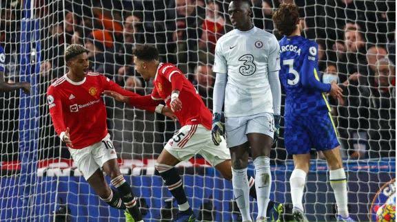 Premier League leaders Chelsea were held to a 1-1 draw at home to Manchester United on Sunday as Manchester City moved to within a point of top spot following a 2-1 win over West Ham in swirling snow.