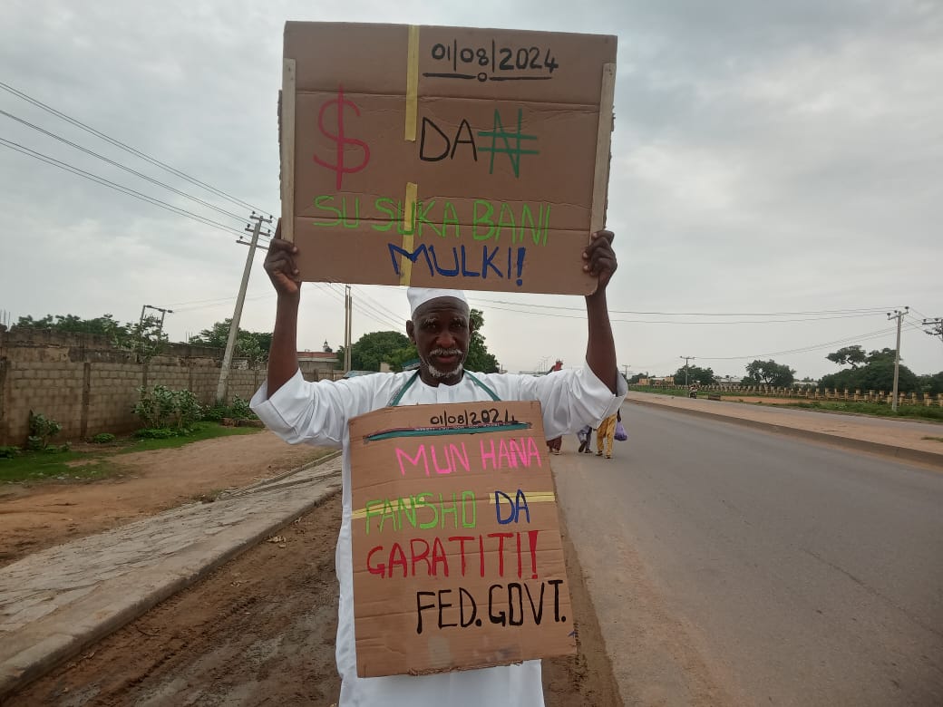 An elderly man courageously took to the streets of Kano to begin his protest.