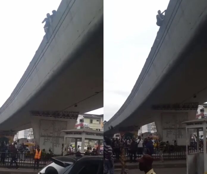 Man rescued while attempting suicide by jumping off a popular bridge in Lagos (Video)