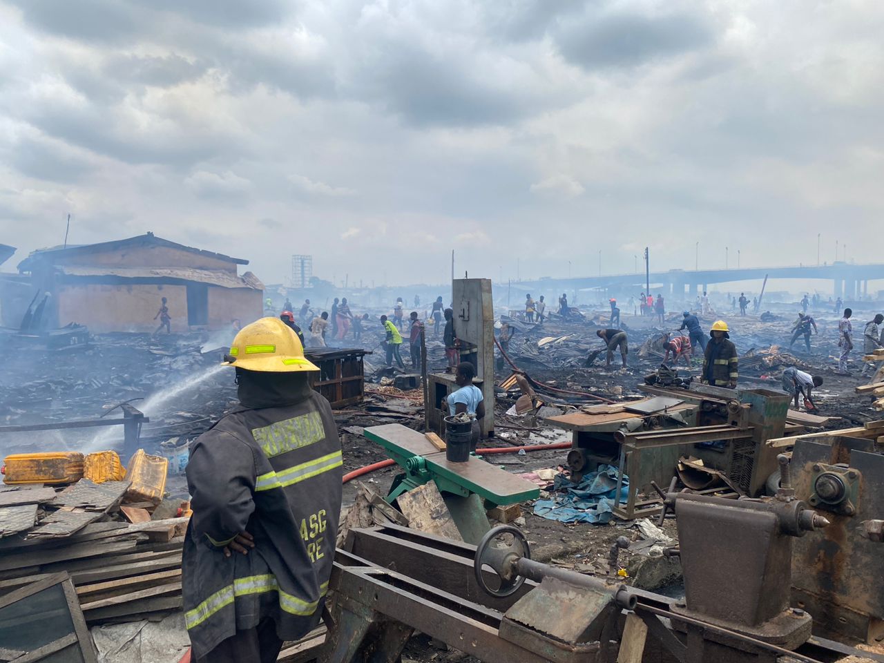 Many feared trapped in fire outbreak at Lagos plank market
