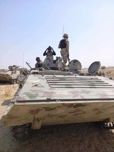 Men of 401 Special Task Force Brigade in conjunction with 19 Brigade, Baga, yesterday and this morning attacked the base of Boko Haram/ISWAP in Gudumbali and destroyed camps of the two fighters forces destroying vehicles and killing some of the insurgents.