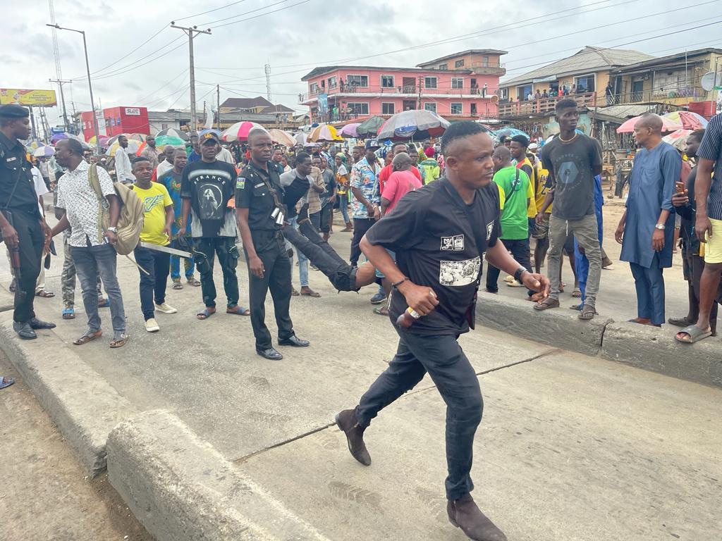 Police officers from the Ketu Division quickly arrived at the scene to restore order. The unidentified policeman was also swiftly taken to the hospital for treatment.
