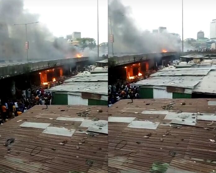 Road users plying the famous Eko bridge have been advised to take alternative routes as part of the most popular market in Lagos – Apongbon market on the Island is said to be on fire.