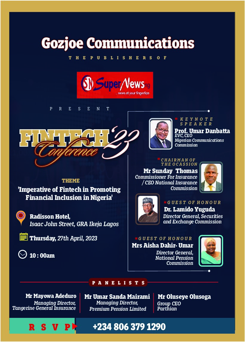 SUPERNEWS Nigeria will bring together regulators and experts from the financial services sector in Lagos on Thursday, April 27, 2023, to discuss the relevance of Fintech in bringing the unbanked, uninsured, and those yet to be part of pension into the financial system for economic growth.