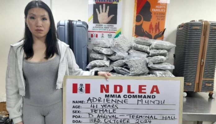A Canadian national, 41-year-old Adrienne Munju, has been detained by the National Drug Law Enforcement Agency (NDLEA) at Lagos’s Murtala Muhammed International Airport for attempting to import a significant quantity of synthetic cannabis, known as “Canadian Loud”. The drugs were discovered during a search of her luggage upon arrival from Canada on Thursday, 3rd October.